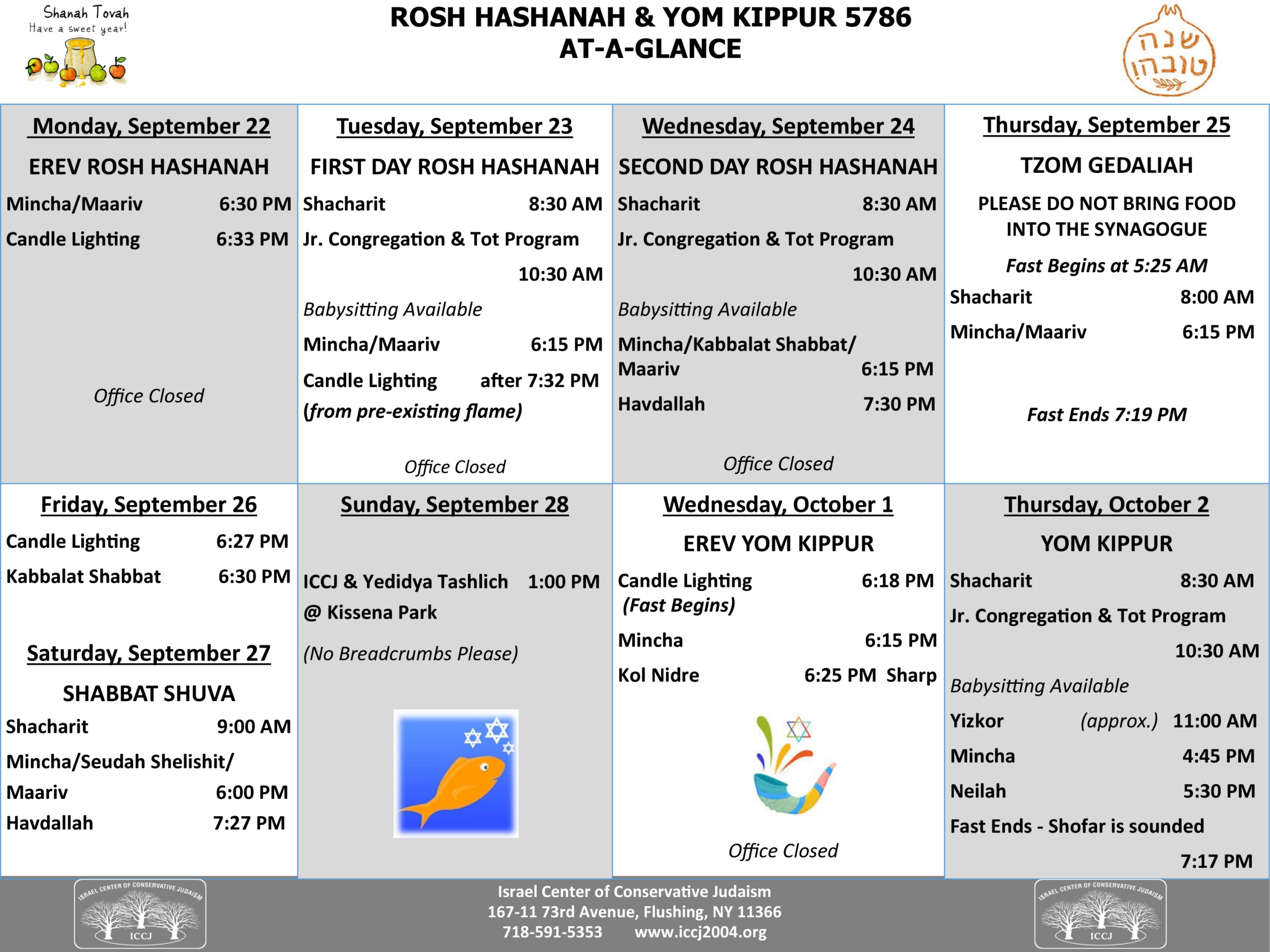 Rosh Hashanah Yom Kippur at a glance 5786 -2025 FINAL